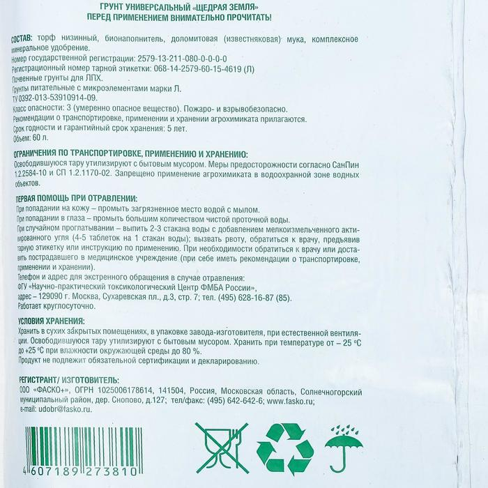 Грунт универсальный Щедрая земля - готовый к применению универсальный питательный грунт с минеральными удобрениями.