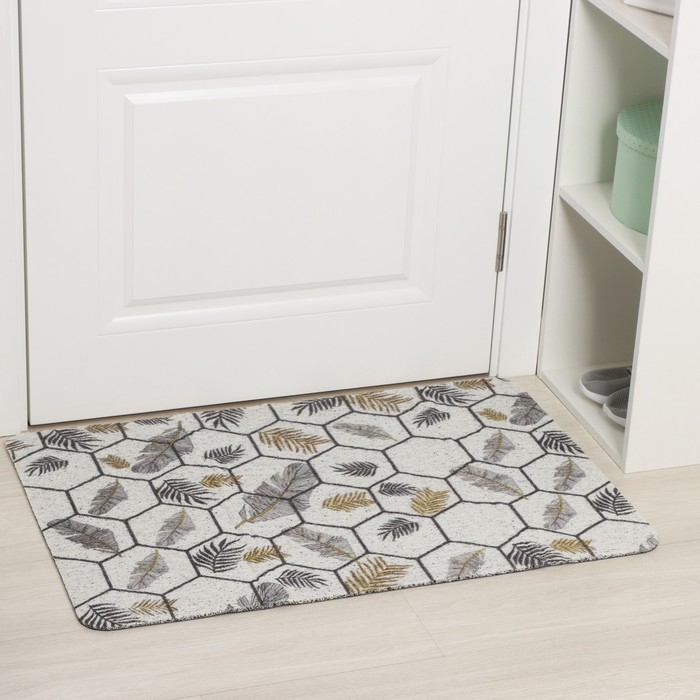Коврик придверный грязезащитный Доляна «Мрамор», вырезной, 60×90 см, цвет серый
