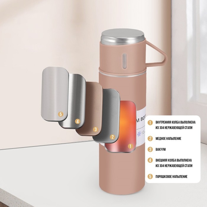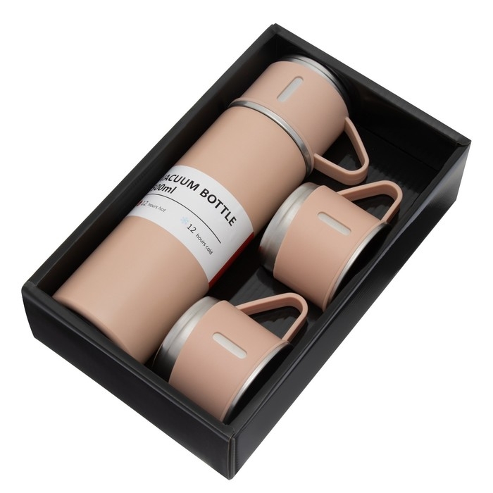 Набор "Мастер К": термос 500 мл и 3 кружки 160 мл, сохраняет тепло 12 ч, бежевый 984093