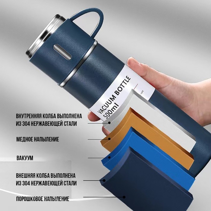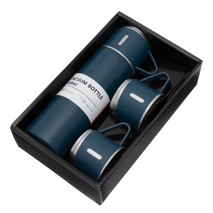 Набор "Мастер К": термос 500 мл и 3 кружки 160 мл, сохраняет тепло 12 ч, синий
