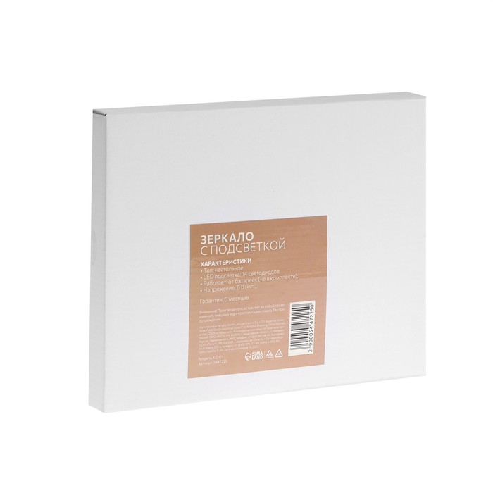 Зеркало Luazon KZ-01, подсветка, настольное, 14 диодов, 4хАА (не в комплекте), белое