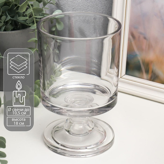 Подсвечник стекло на 1 свечу "Бокал на короткой ножке" прозрачный