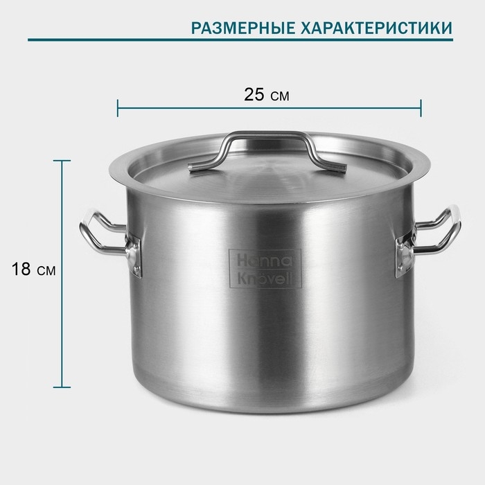 Кастрюля из нержавеющей стали Hanna Knövell с крышкой, 10 л, d=25 см, h=18 см, толщина 0,8мм, дно ТРС, толщина дна 4,4 мм, 201 сталь, индукция