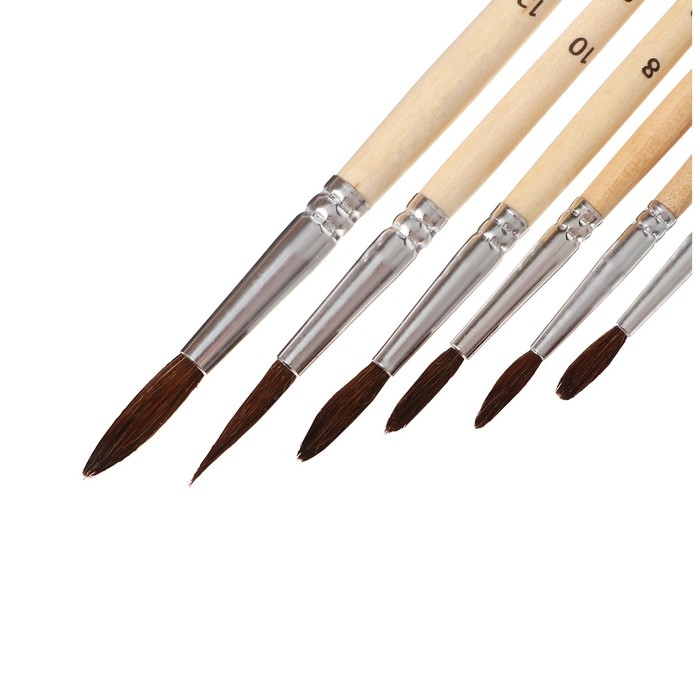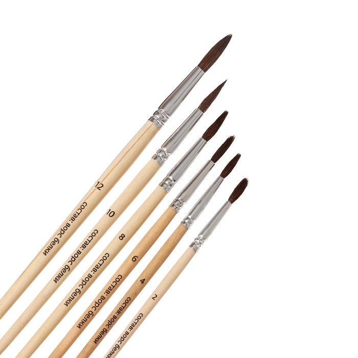 Набор кистей белка, Calligrata, круглые, 6 штук (№2,4,6,8,10,12) с деревянными ручками, в блистере
