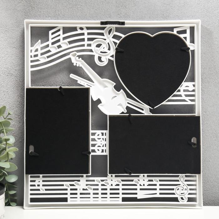 Фоторамка пластик на 3 фото 10х15, 13х12 см "Скрипка и ноты" белый 34х32 см