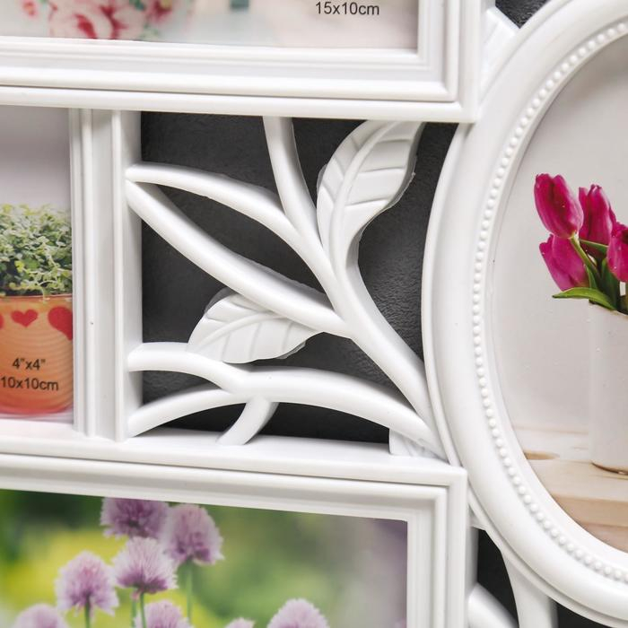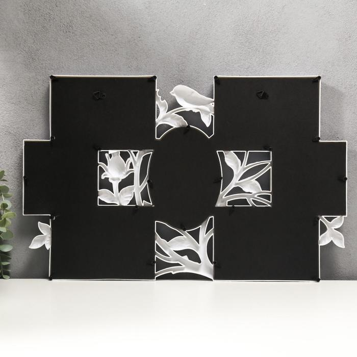 Фоторамка пластик на 7 фото 10х10, 10х15 см "Птица и шиповник" белый 33,5х52 см