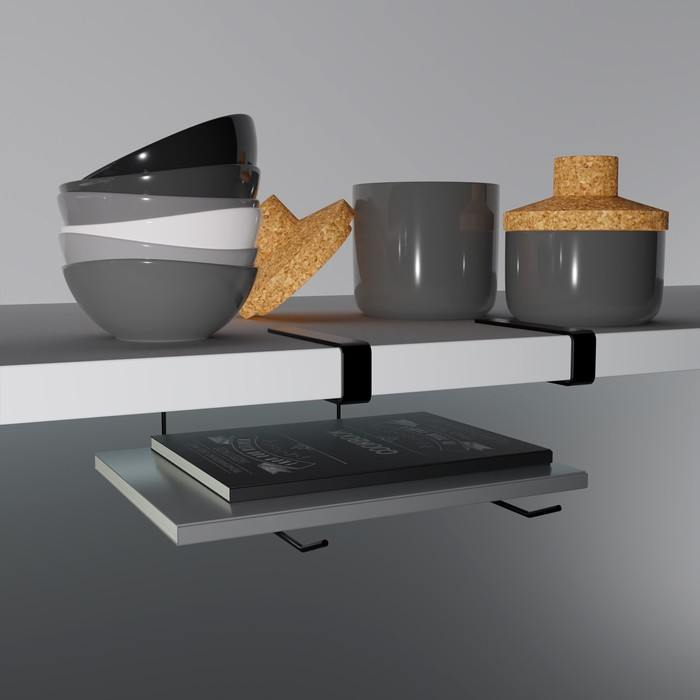 Универсальный держатель предназначен для использования дополнительной возможности расширить имеющуюся полезную площадь на кухне.
