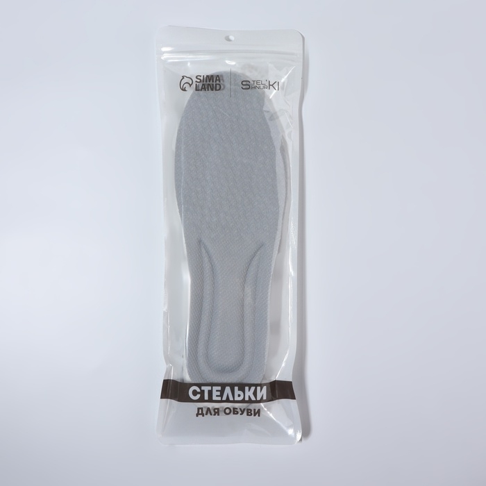 Стельки для обуви, амортизирующие, р-р RU до 44 (р-р Пр-ля до 45), 28 см, пара, цвет серый