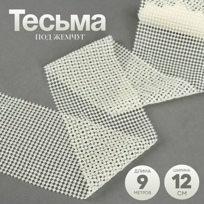 Тесьма под жемчуг, пластик, 12 см, в рулоне 9 метров, молочный оттенок