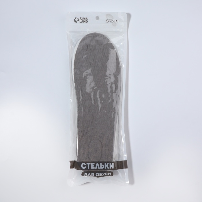 Стельки для обуви, амортизирующие, р-р RU до 44 (р-р Пр-ля до 45), 28 см, пара, цвет серый