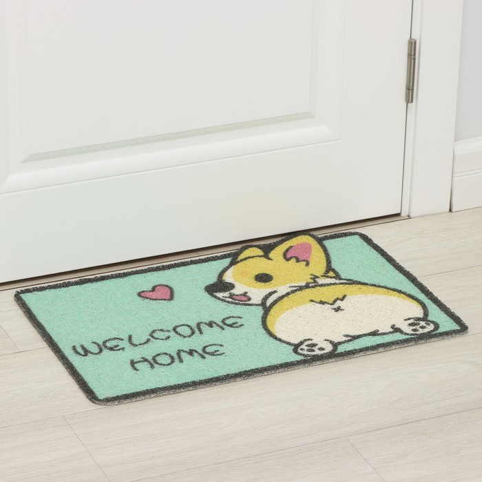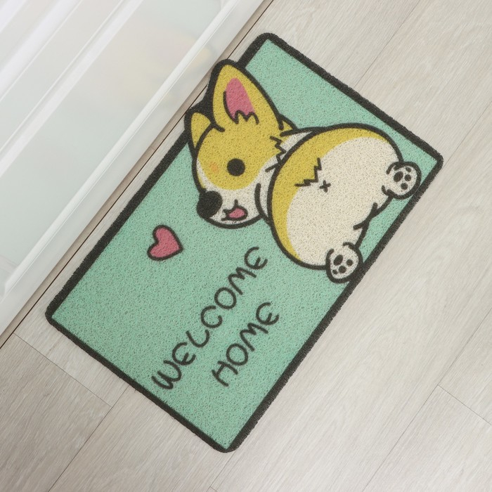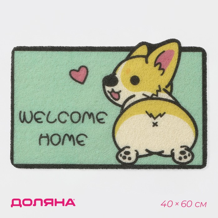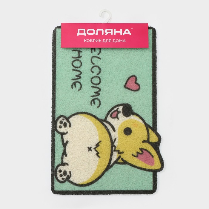 Коврик придверный грязезащитный Доляна «Корги», 40×60 см, цвет зелёный