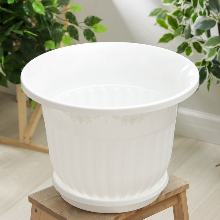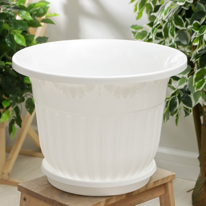 Горшок с поддоном «Лозанна», 25 л, цвет белый