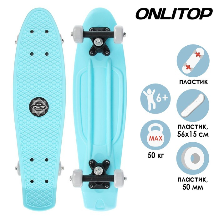 Пенниборд ONLITOP, 56х15 см, колёса PVC 50 мм, пластиковая рама, цвет голубой
