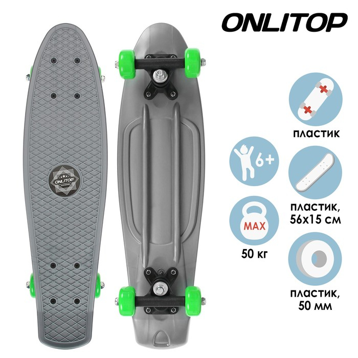 Пенниборд ONLITOP, 56х15 см, колёса PVC 50 мм, пластиковая рама, цвет серый