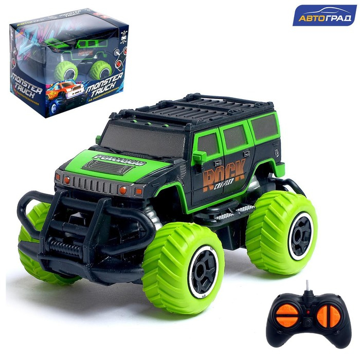 Радиоуправляемая машина-вездеход способна проехать там, где для легковых авто дороги нет! Большие колёса и высокая пружинная подвеска помогут преодолеть любые препятствия.