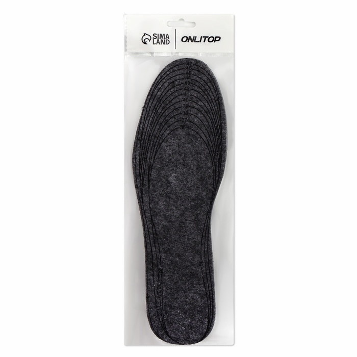 Стельки для обуви, утеплённые, универсальные, р-р RU до 46 (р-р Пр-ля до 47), 29 см, пара, цвет серый