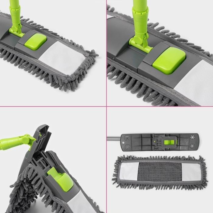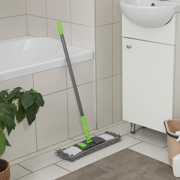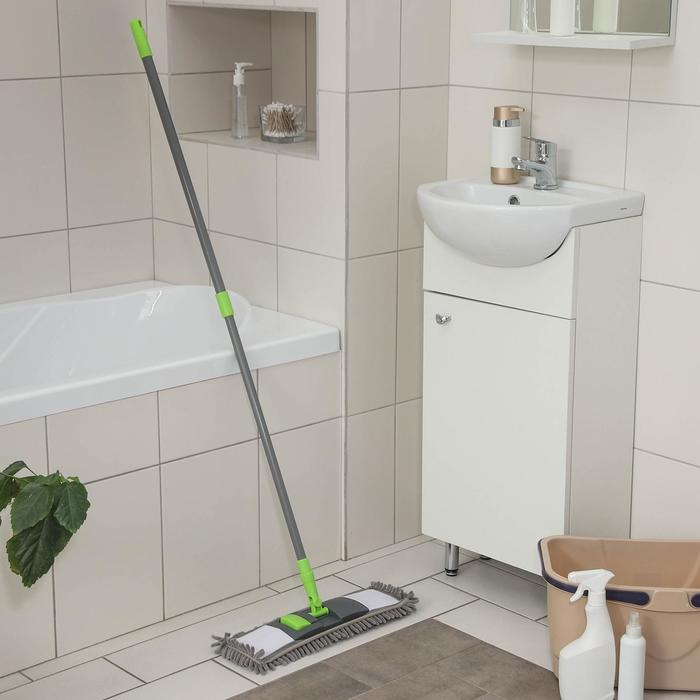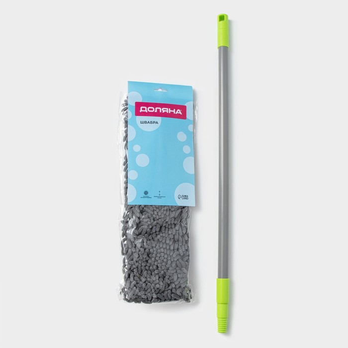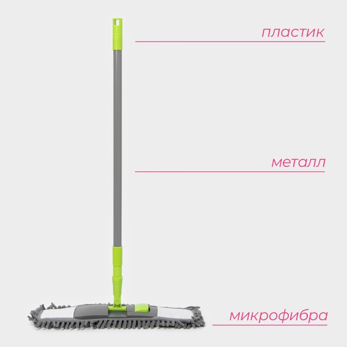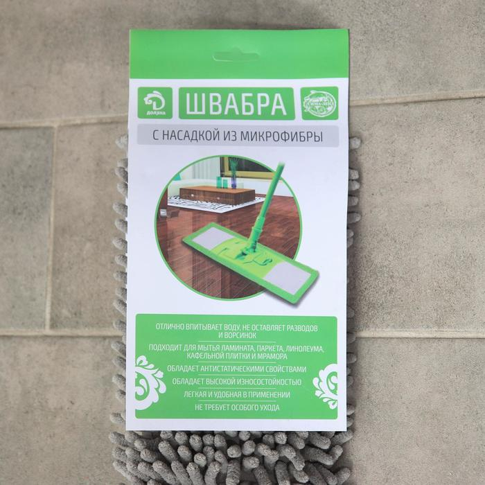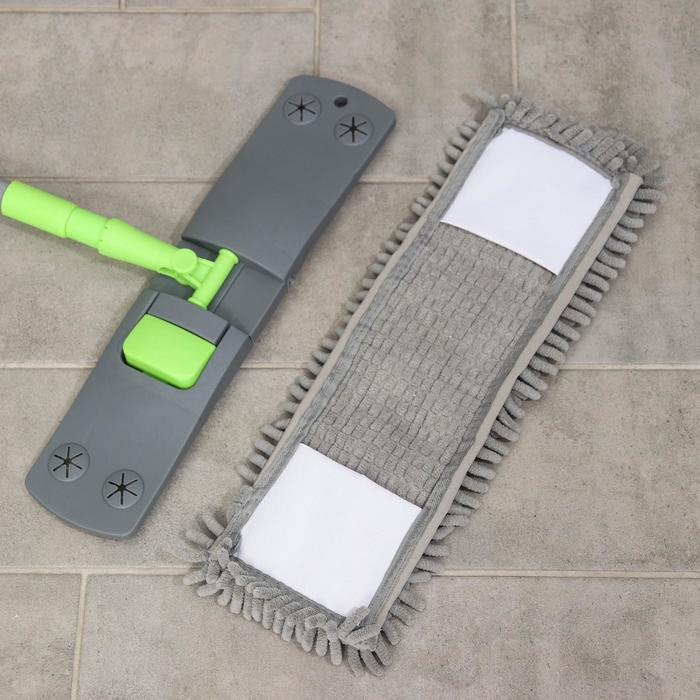 Швабра для мытья пола плоская Доляна, окрашенный телескопический черенок, микрофибра букля, 42×12×73(124) см