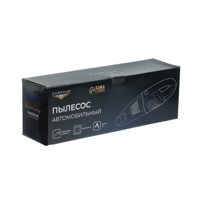 Пылесос автомобильный CARTAGE, беспроводной, 3 насадки, 120 Вт, 12 В, черный