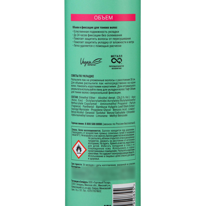 Лак д/волос Тафт Объём д/тонких волос ссф