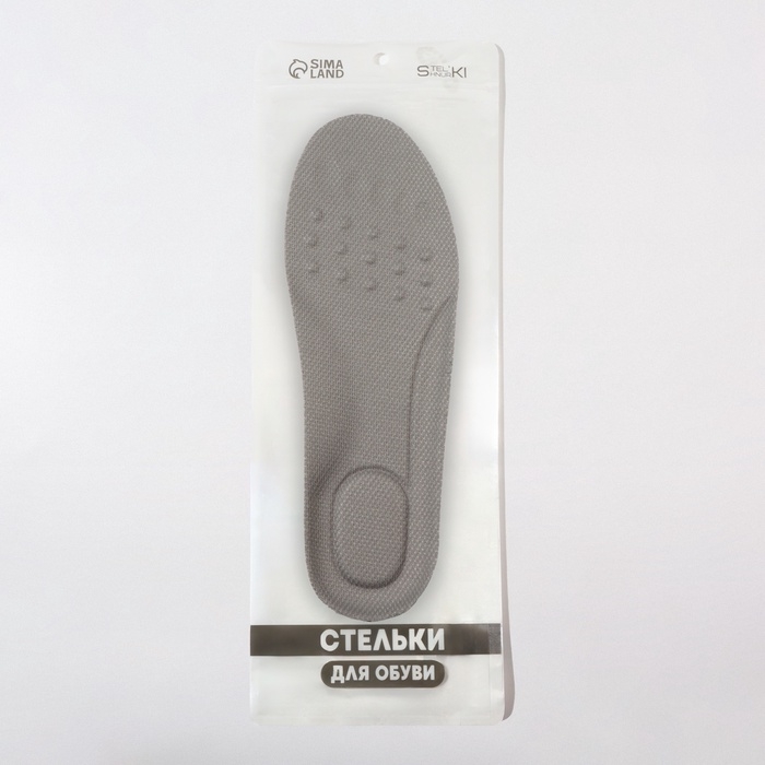 Стельки для обуви, амортизирующие, р-р RU до 44 (р-р Пр-ля до 45), 28 см, пара, цвет серый