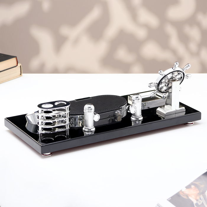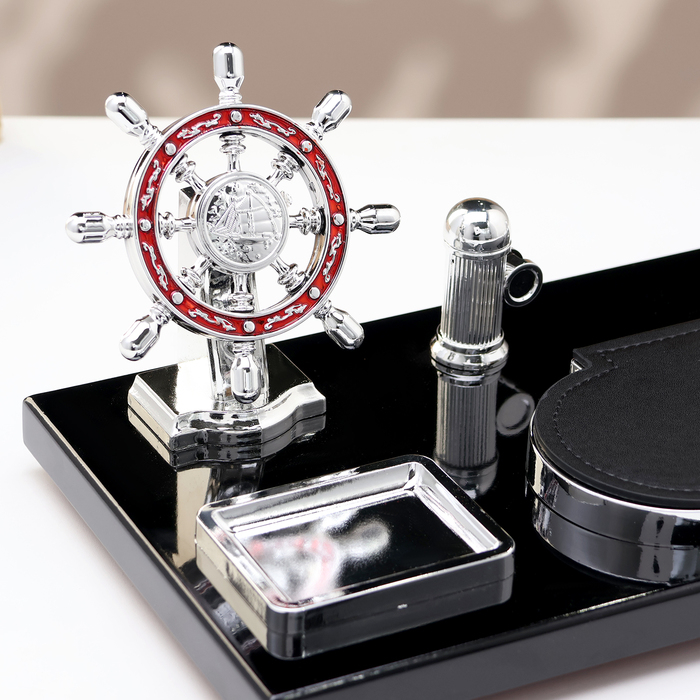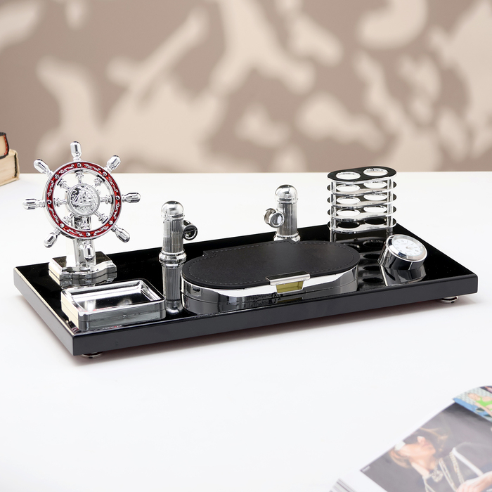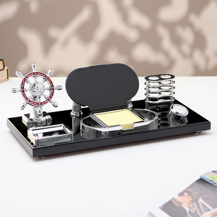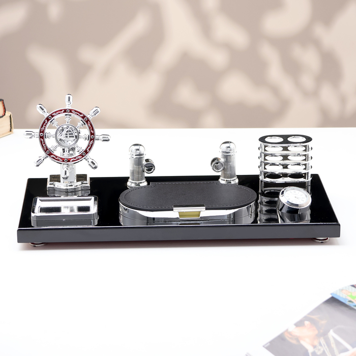 Набор настольный 6в1 (часы, блок д/ бумаги,каранд-ца, визитица,штурвал,скреп-ца ) 40*20*15см