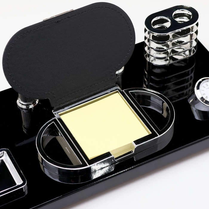 Набор настольный канцелярский 6в1 с визитницей и часами, черное дерево