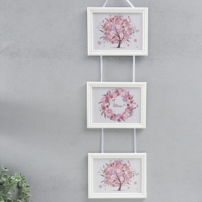 Фоторамка тройная на тесьме L-2 15х21 см белый (пластиковый экран)