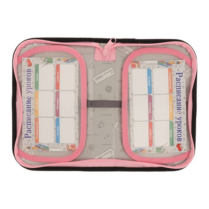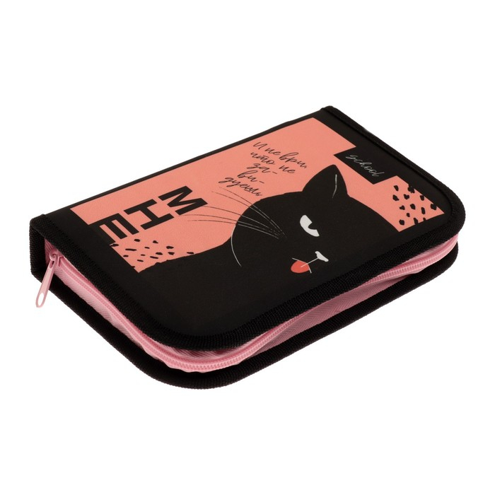 Пенал 1 секция, 130 х 210 х 40 мм, 2 откидные планки, тканевый, Calligrata TOP, Content "Кот", чёрный