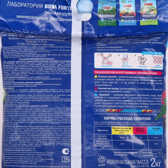 Удобрение комплексное Бона Форте с микроэлементами для винограда, 2 кг