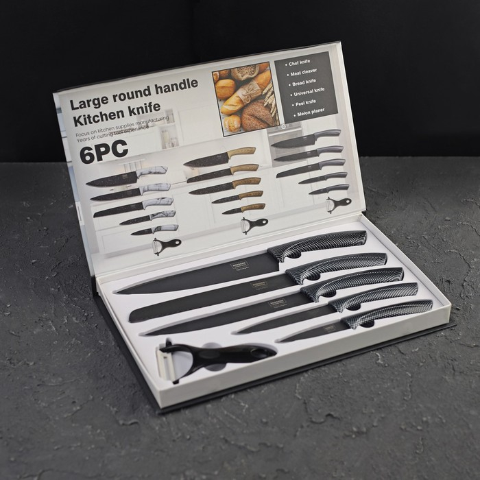 Набор кухонных принадлежностей «Гипноз», 6 предметов, цвет чёрный