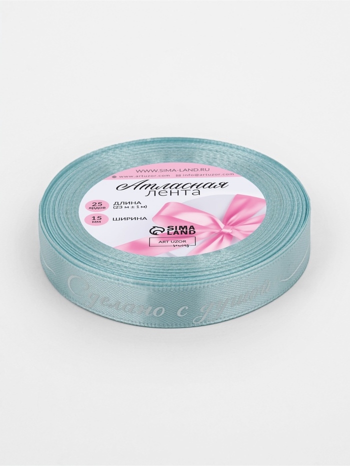 Лента атласная 15мм*25±1ярд(23м±1м) Сделано с душой голубой №104 АУ