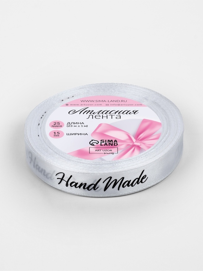 Лента атласная 15мм*25±1ярд(23м±1м) Hand Made белый №01 АУ