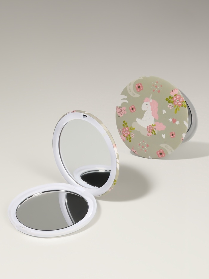 Зеркало складное «Единороги», d = 7,3 см, с увеличением, цвет оливковый