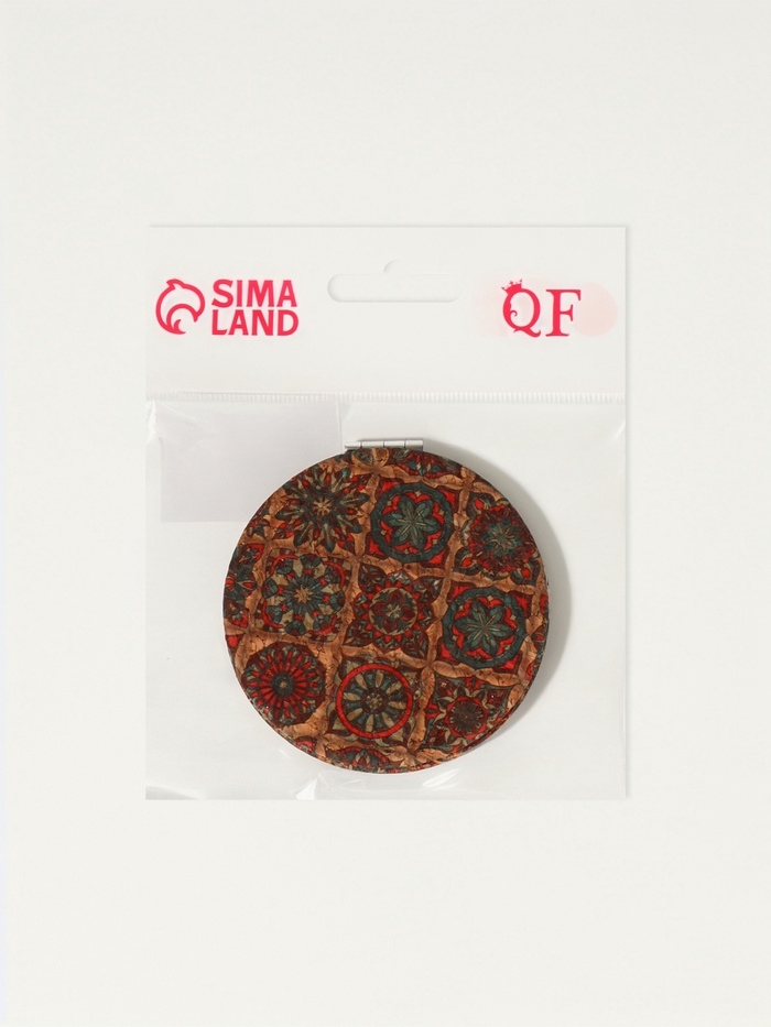 Зеркало складное «Орнамент», d = 7,2 см, с увеличением, цвет коричневый/оранжевый