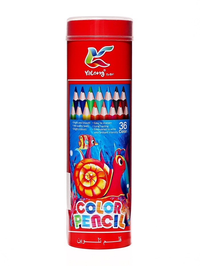 Карандаши 36 цветов, в металл тубусе, трехгранные, деревянные, Морские обитатели