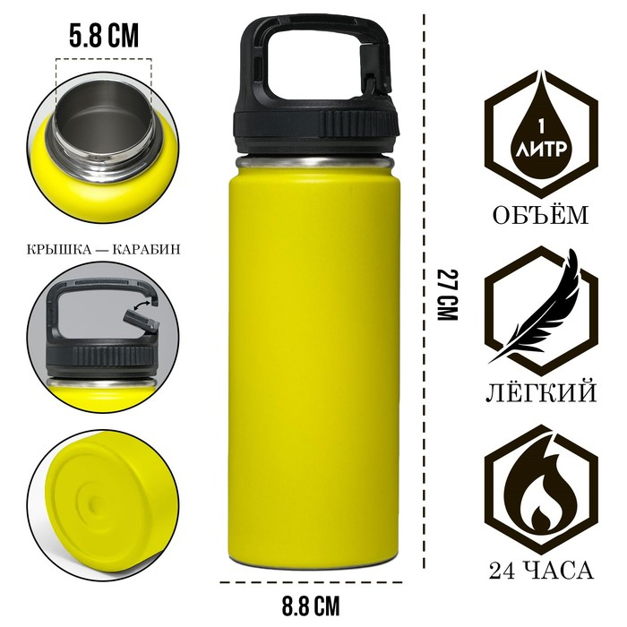 Термос, 1 л, Карабин, сохраняет тепло 24 ч, жёлтый