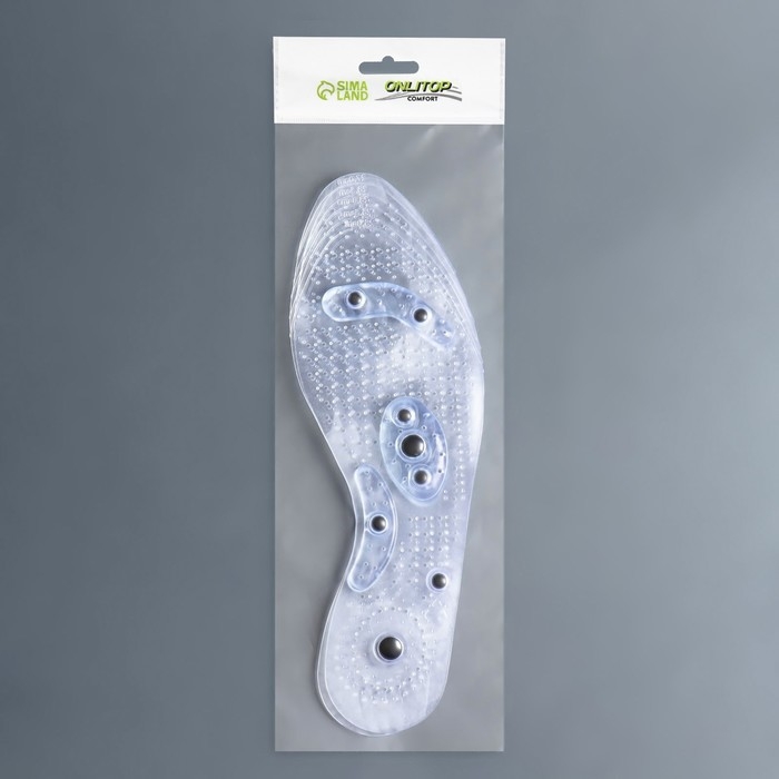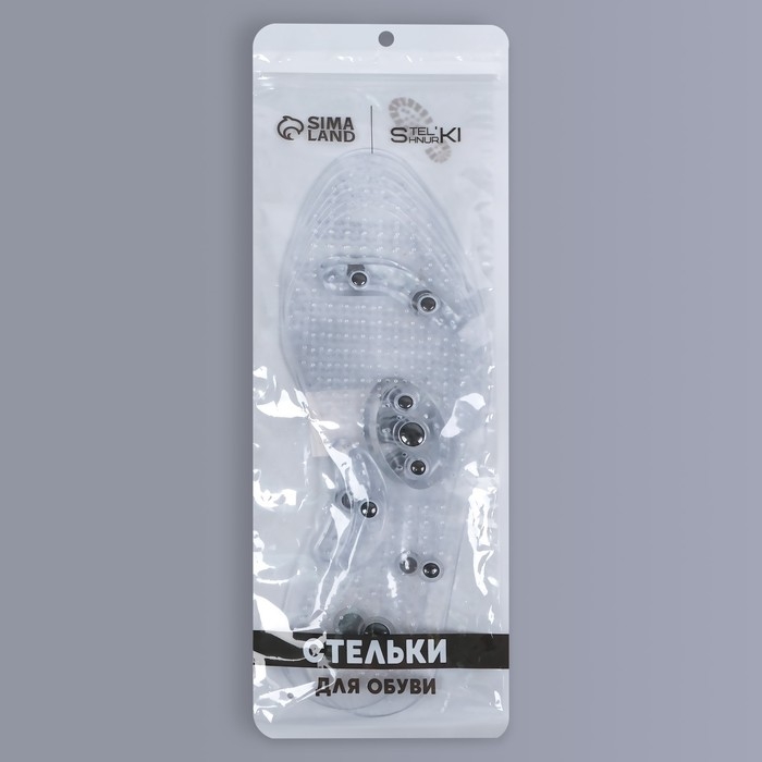Стельки для обуви, универсальные, с магнитами, массажные, дышащие, р-р RU до 41 (р-р Пр-ля до 42), 26,5 см, пара, цвет прозрачный