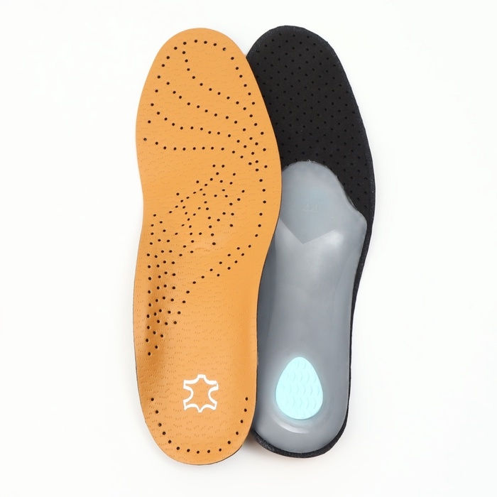 Стельки для обуви, амортизирующие, дышащие, с жёстким супинатором, р-р RU 44 (р-р Пр-ля 44), 28 см, пара, цвет коричневый