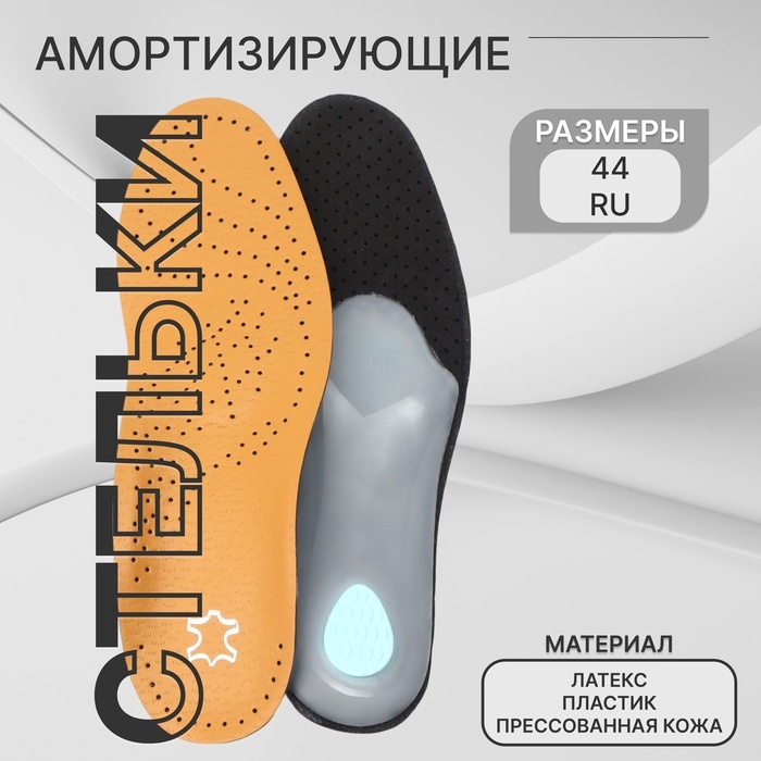 Стельки для обуви, амортизирующие, р-р RU до 44 (р-р Пр-ля до 45), 28 см, пара, цвет серый
