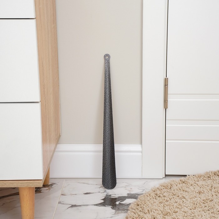 Ложка для обуви Доляна, с кольцом, металлическая, 45×5 см, покрытие антик серебро