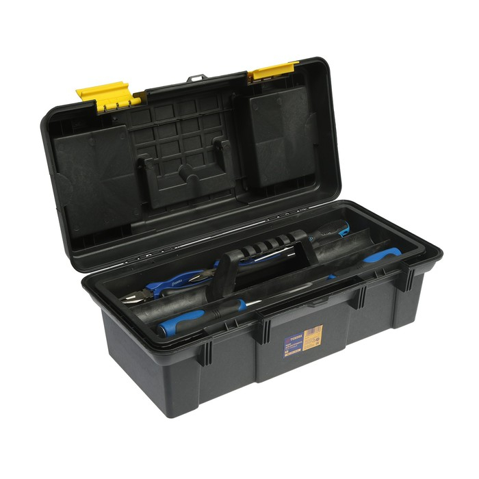 Ящик для инструмента ТУНДРА, 19", 490 х 245 х 215 мм, пластиковый, лоток, два органайзера