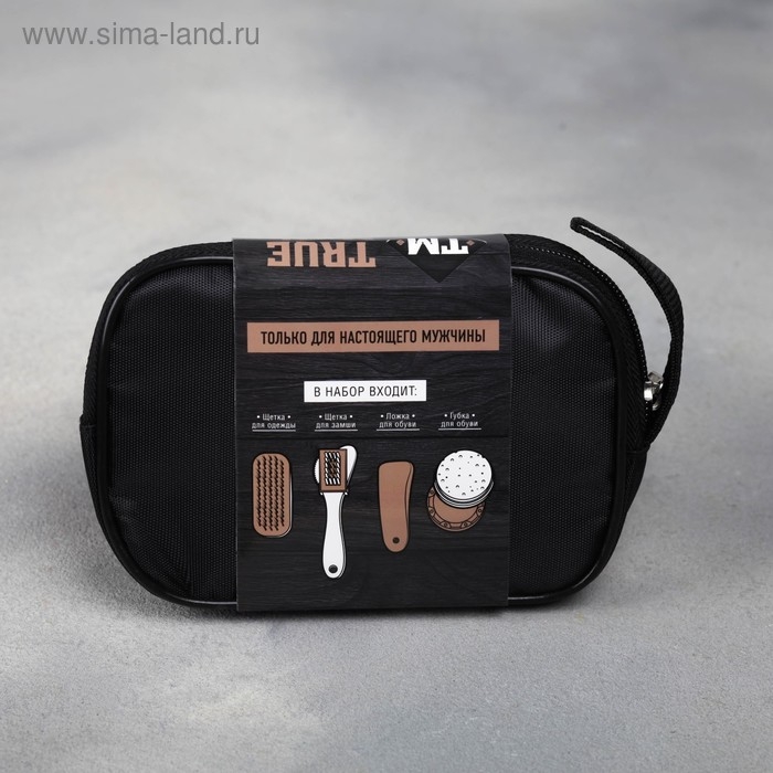 Подарочный набор дорожный для обуви «True man»: щётка 2 шт, губка, лопатка