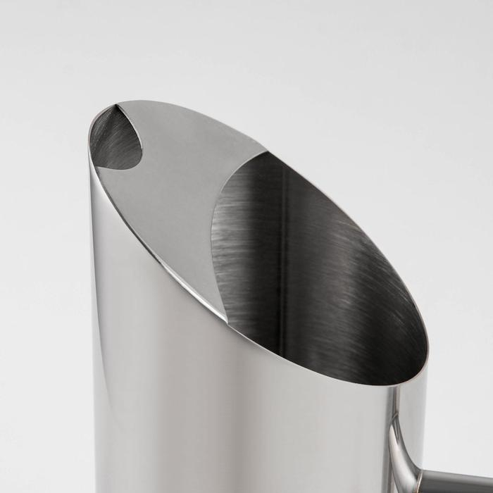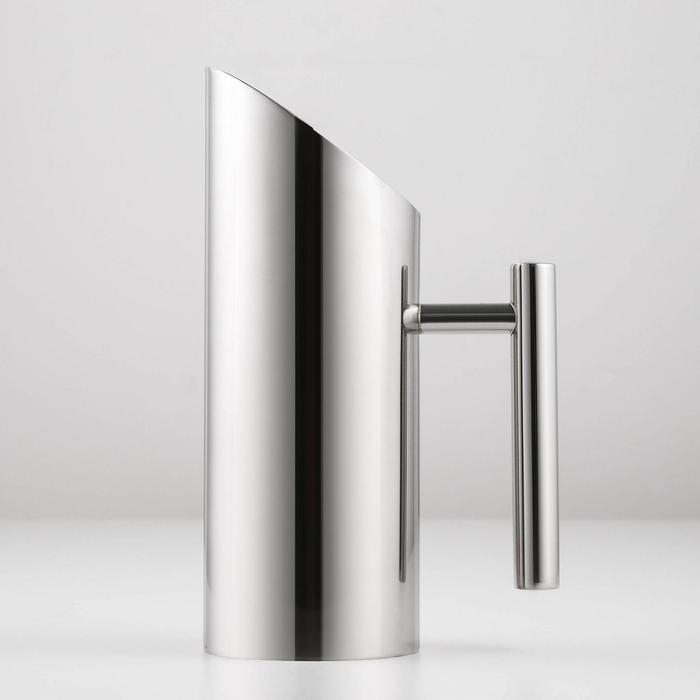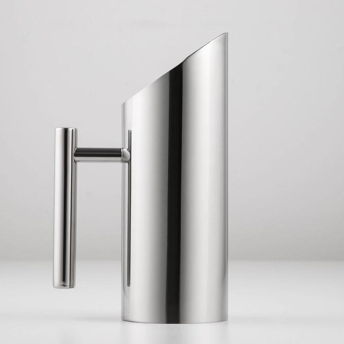 Стильный кувшин изготовлен из качественной нержавеющей стали. Корпус ёмкости имеет гладкую глянцевую поверхность. Кувшин с эргономичной ручкой и удобным носиком.