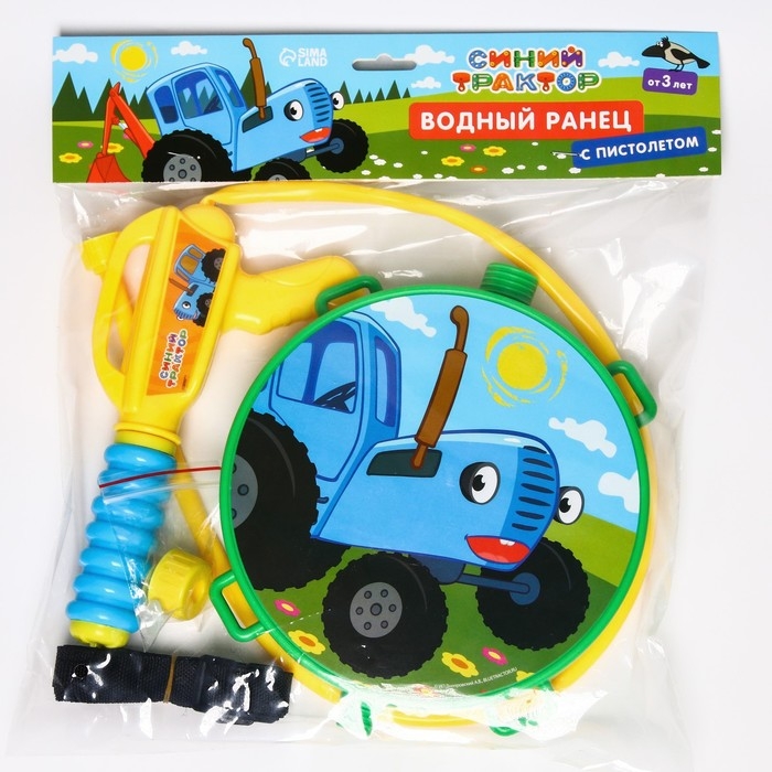 Водный пистолет "Трактор", ранец-баллон, Синий трактор