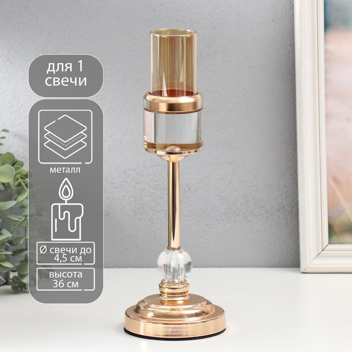 Подсвечник металл на 1 свечу "Прозрачность" золото 36х12х12 см