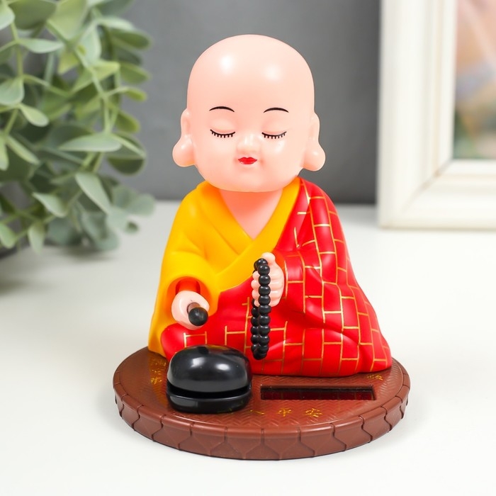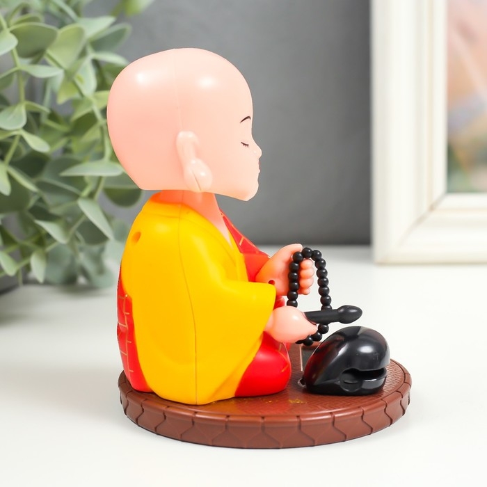 Маятник пластик от солнечной батареи "Маленький будда с чётками" 11х8,5х8,5 см