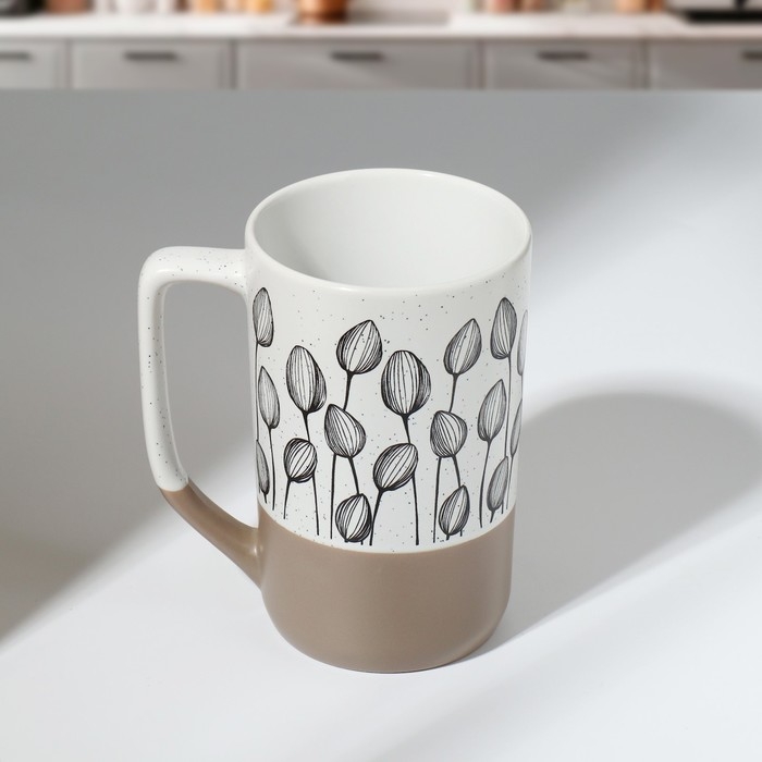 Кружка керамическая «Цветы», 500 мл, цвет белый