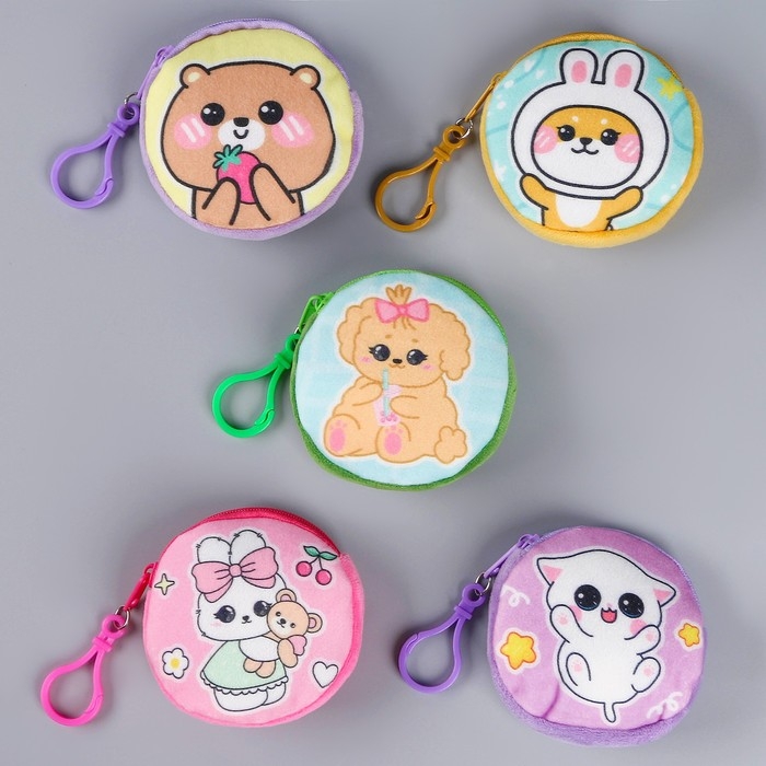 Кошелёк детский "Мультяшки", плюшевый, цвет МИКС