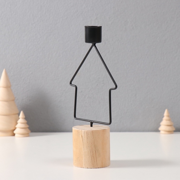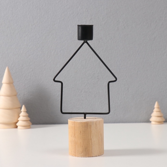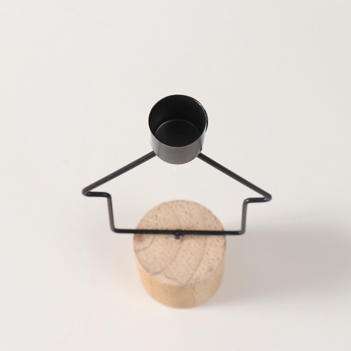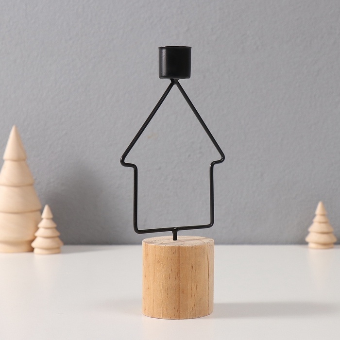 Подсвечник металл, дерево на 1 свечу "Домик" d=2 см 9х5х17,5 см