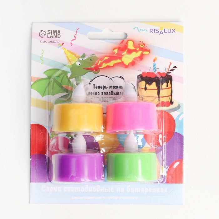 Светодиодные свечи, ночники LED RISALUX «Загадай желание» набор 4 шт., RGB, 3.5×3.5×4 см, МИКС